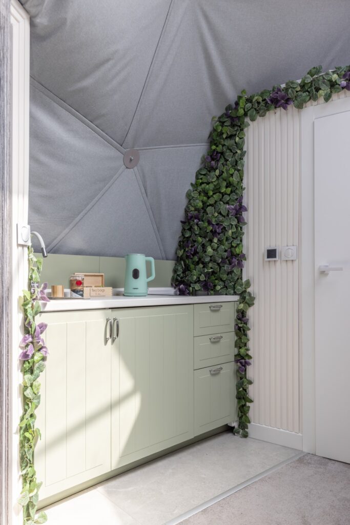 Glamp nr 3 to wyjątkowy, nowoczesny domek o subtelnym uroku jasnego drewna i oliwkowych akcentów, który oferuje swoim gościom idealne miejsce na romantyczny wypoczynek. Zaprojektowany z myślą o tych, którzy pragną uciec od codziennego zgiełku, domek zapewnia wyjątkową ciszę i spokój, sprzyjającą pełnemu relaksowi.